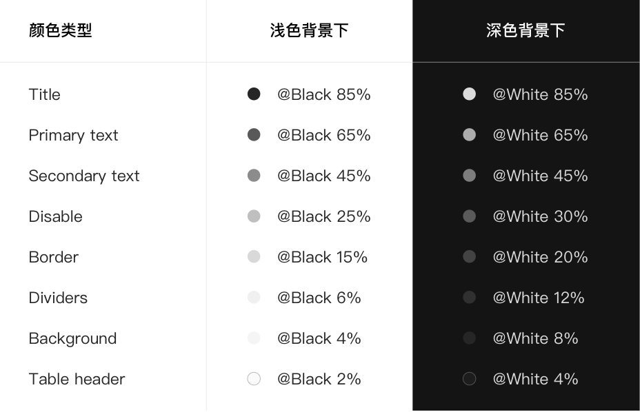 偷个懒,直接用Antd的中性色,以color-7为基准,大于7的为Dark模式下的色彩,小于7的为Light模式下的色彩。