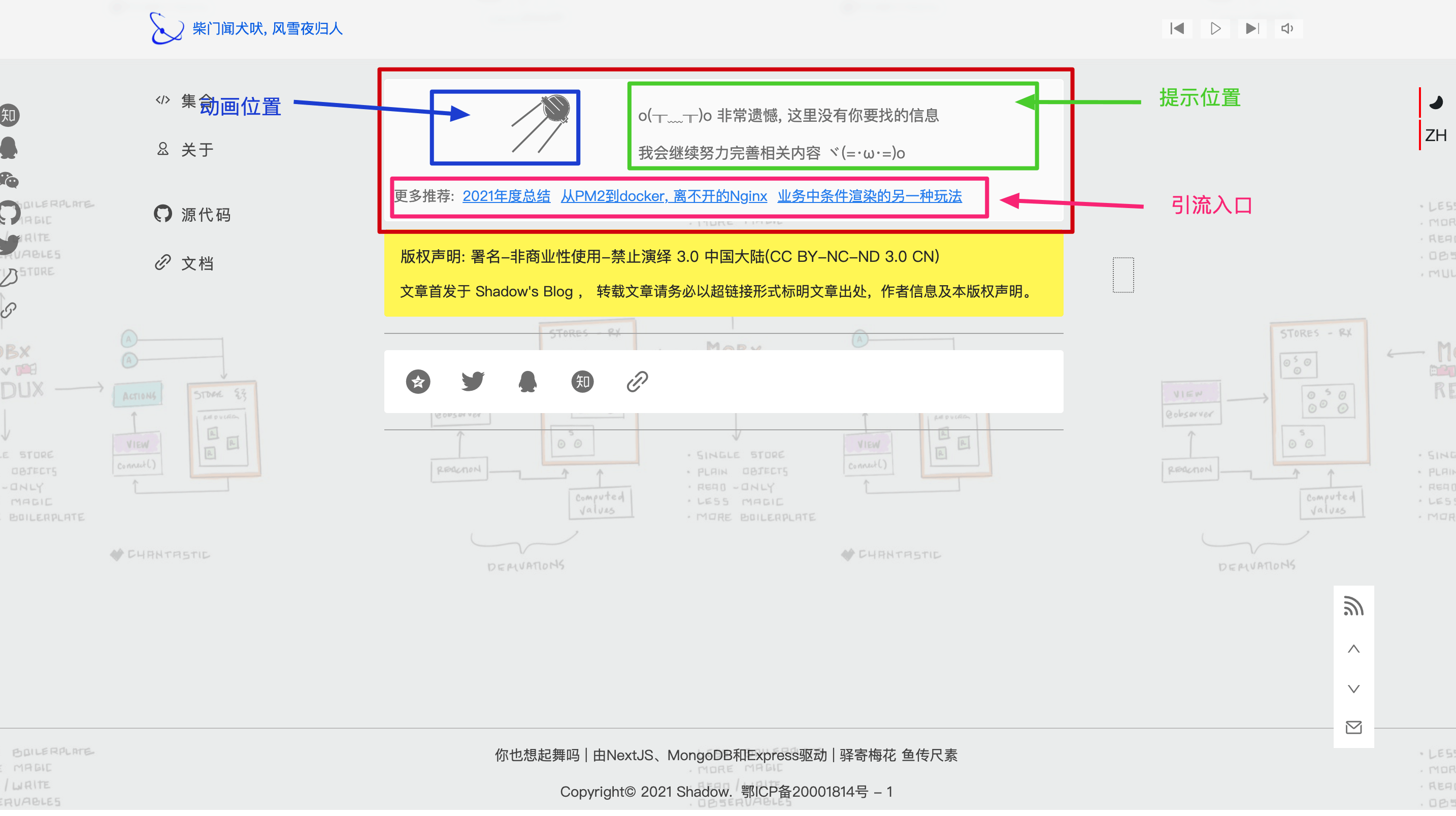 举个例子404页面,我个人认为:在类博客项目这种内容型项目中,我并不是想看一个枯燥的404提示,我更想看的是我查询的关键字在没有反馈的内容时,开发者给用户的交互是一种什么样的实现,才能吸引用户停留在我的网站中。